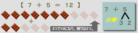 問題; 7 + 5 = 7 + (3 + 2) = 10 + 2 = 12