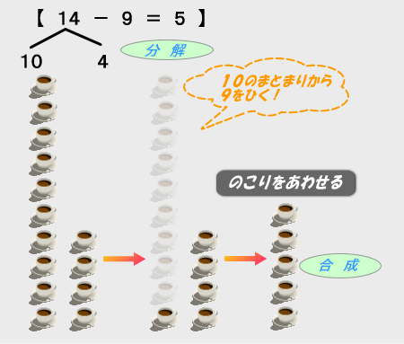 10以上の数の「合成・分解」を理解することによって、繰り上がりや繰り下がりの考えの基礎を身に付けます。小学1年生の二学期は、学力格差が始めて目に見える時期です。子供も、自分ができる子か否かを知ることになります。自分ができる子であるとプライドを持ち、楽しく勉強できるよう、時間をかけながら根気よく理解させましょう。 |